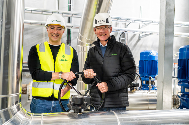 Photo caption: Samir Abboud (left) and the CEO of Kredsløb, Bjarne Munk Jensen, helped open the valves, enabling geothermal heat to strengthen and secure district heating in Aarhus. Photo: Innargi.